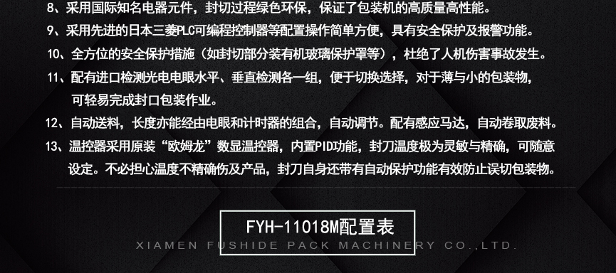 擁有多項(xiàng)專利技術(shù) 數(shù)千平標(biāo)準(zhǔn)廠房 批量標(biāo)準(zhǔn)化生產(chǎn) 可定制開(kāi)發(fā)和自動(dòng)化流水線搭建! 超前技術(shù)團(tuán)隊(duì) 先進(jìn)加工工藝 高精度加工設(shè)備 近20年專業(yè)研發(fā)經(jīng)驗(yàn)不斷改進(jìn)、創(chuàng)新、突破!我們定位于專注做中高端全自動(dòng)熱收縮膜包裝機(jī),請(qǐng)不要拿我們和不同定位的廠家對(duì)比!我們是源頭工廠…