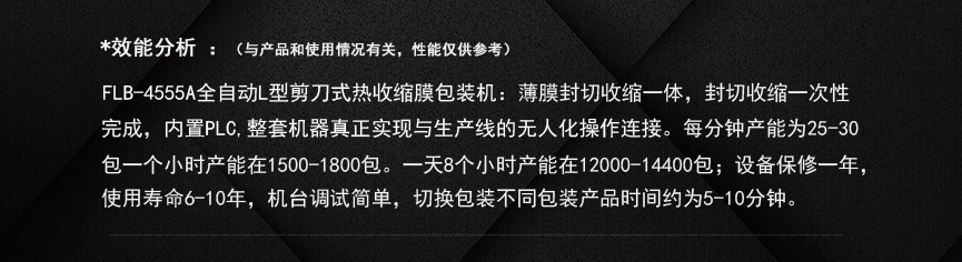 富仕德全自動“L”型熱收縮膜包裝機 機器效能:薄膜封切收縮一體完成,每分鐘產(chǎn)能為25-30包,一個小時產(chǎn)能在1500-1800包。 一天8個小時產(chǎn)能在12000-14400包;設(shè)備保修一年,使用壽命6-10年,機臺調(diào)試簡單