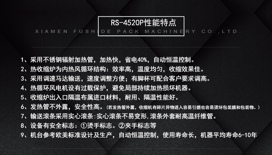 富仕德牌 熱收縮膜包裝封切機特點: