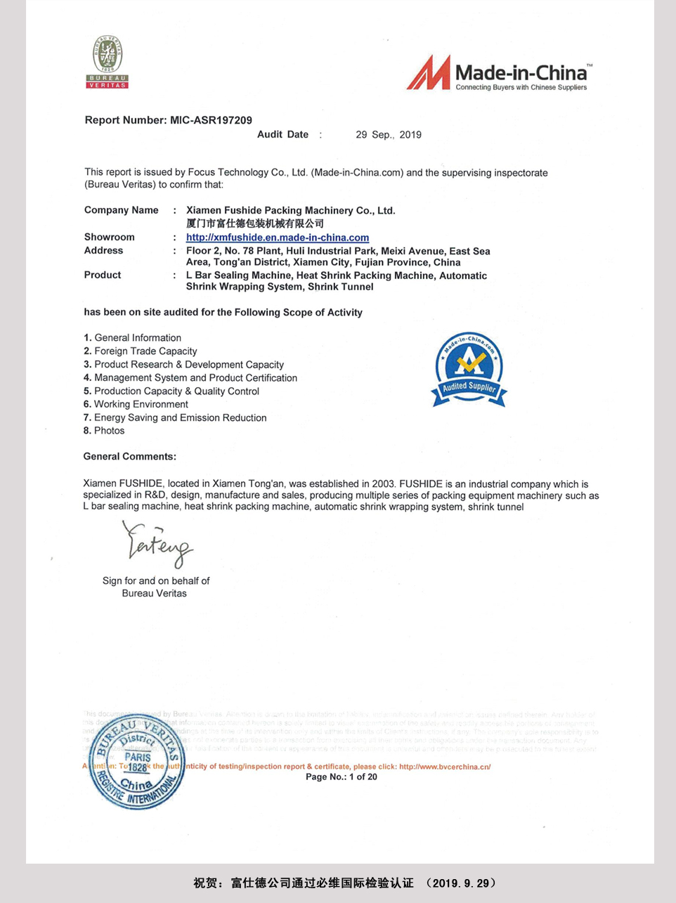 祝賀:富仕德公司通過(guò)必維國(guó)際檢驗(yàn)認(rèn)證